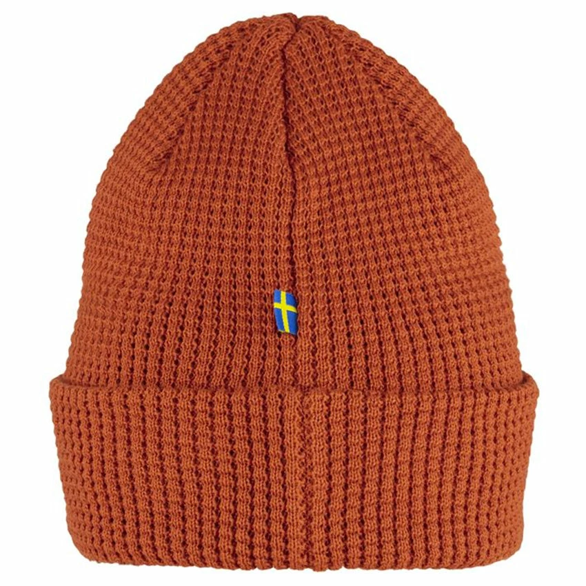 A soft, comfortable knitted hat from Fjällräven made from 100% recycled polyester. With a decorative waffle-knit and wide fold-up edge – the material of the Tab Hat wicks away moisture and dries fast, so it works well for both everyday life and when out on the hills. Small Fjällräven logo tab on the folded edge.