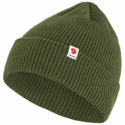A soft, comfortable knitted hat from Fjällräven made from 100% recycled polyester. With a decorative waffle-knit and wide fold-up edge – the material of the Tab Hat wicks away moisture and dries fast, so it works well for both everyday life and when out on the hills. Small Fjällräven logo tab on the folded edge.