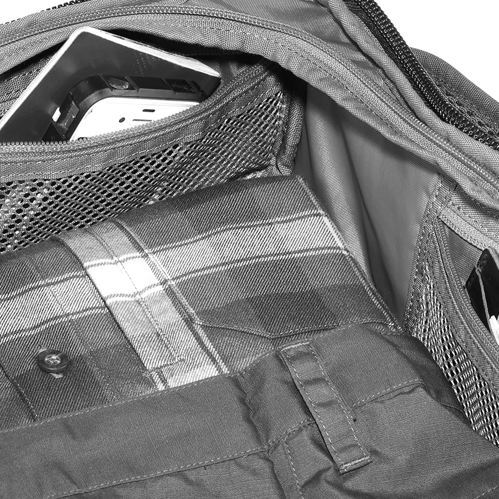- Three zippered mesh pockets inside.