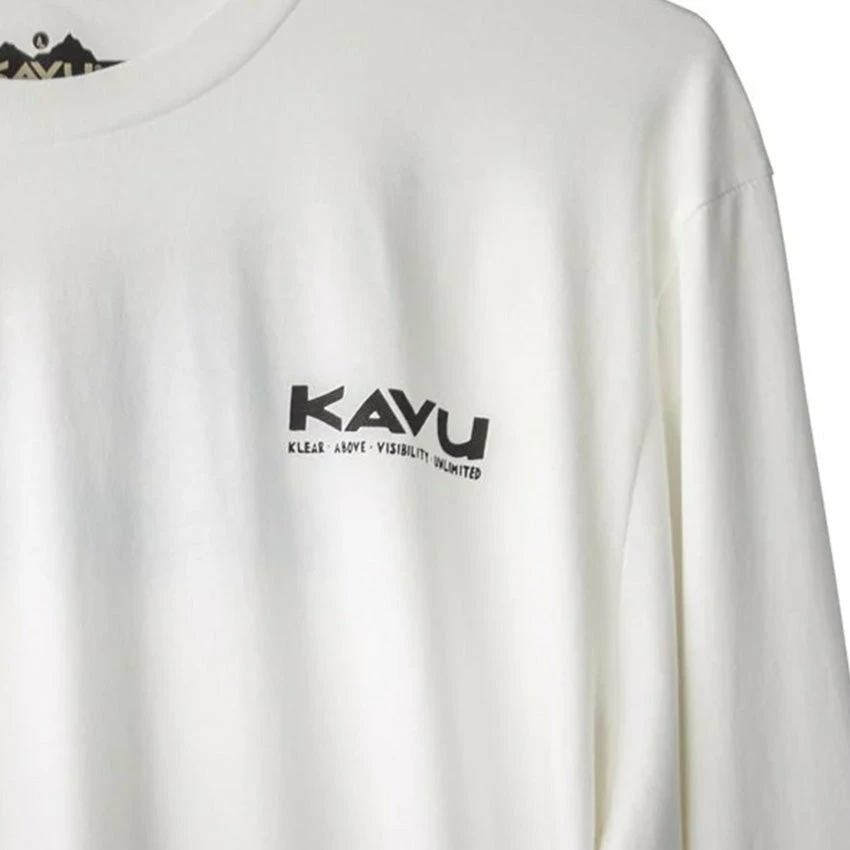 A casual fit, long sleeve crew neck T-shirt from KAVU. With a small screen print on front left chest, and the main screen print design on the centre back.