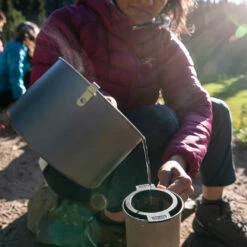 Light and strong thanks to its quality hard-anodized aluminium construction, the Trail Lite Pot 1.3LÂ is a solid foundation to the cook kits of solo travellers. Offering the heat distribution of aluminium, and scratch-resistant durability, this pot is great for water-boiling and one-pot meals. Its compact shape and folding/locking handle help the pot fit easily in smaller packs, so you can move quickly to cover the miles.