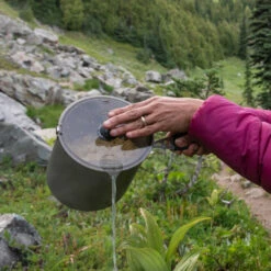 The Trail Lite Pot 2L delivers the lightweight performance of aluminium with the strength of a hard-anodized finish, making it the foundation of a cook kit thats packable and will last. With capacity for 2 backpackers, the taller design helps save space in smaller packs. An excellent water-boiler for simple backcountry meals, this pot features room for mugs and utensils or a small MSR stove, and a folding/locking handle to keep it all in place.