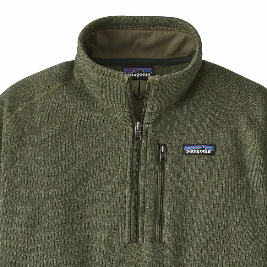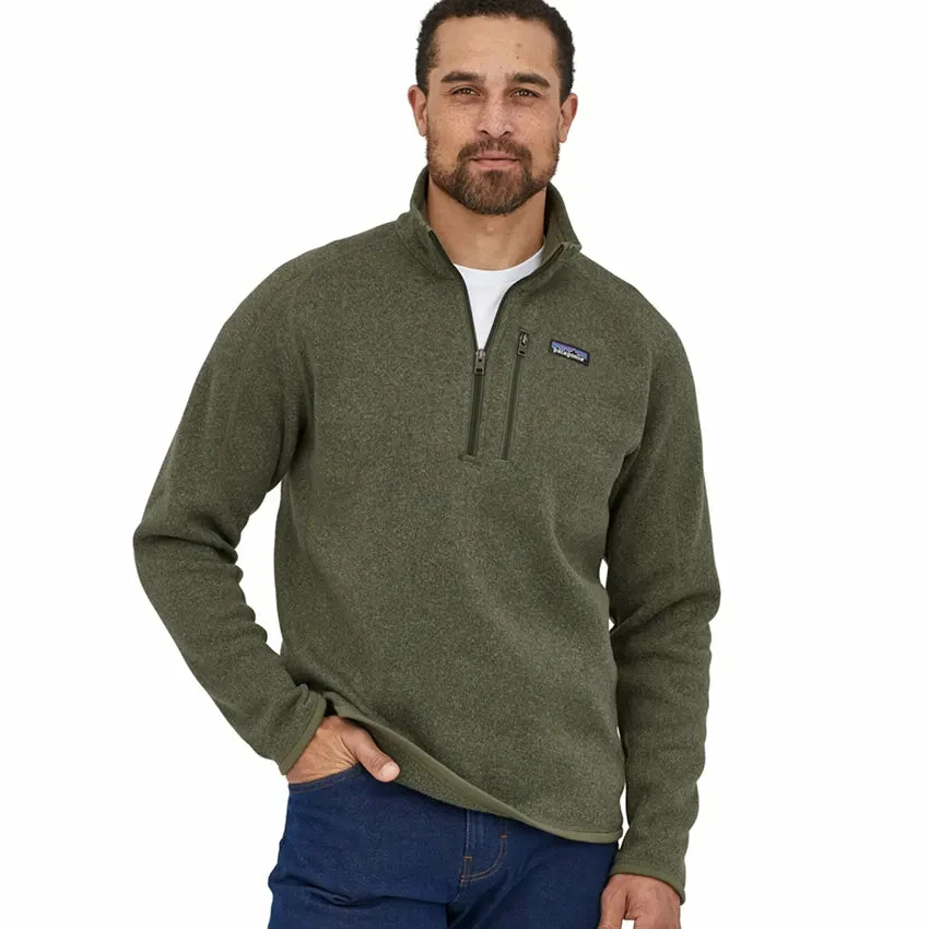 Made with 100% recycled polyester knitted fleece with a fleece interior and heathered yarns. The Men’s Better Sweater 1/4 Zip has a quarter-zip in the front for easy put-on-and-off, with zip-through stand-up collar and raglan sleeves for mobility and pack-wearing comfort. Zippered left-chest pocket and shape-holding micropolyester-jersey trim at cuffs and hem to resist abrasion.