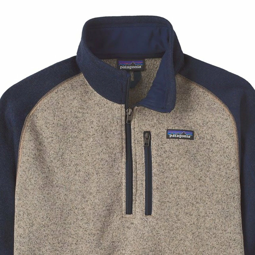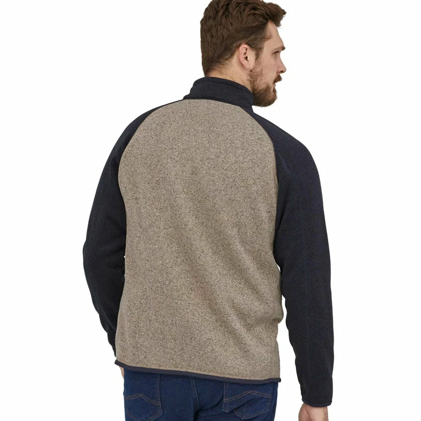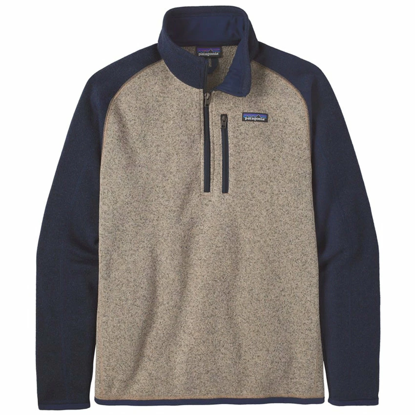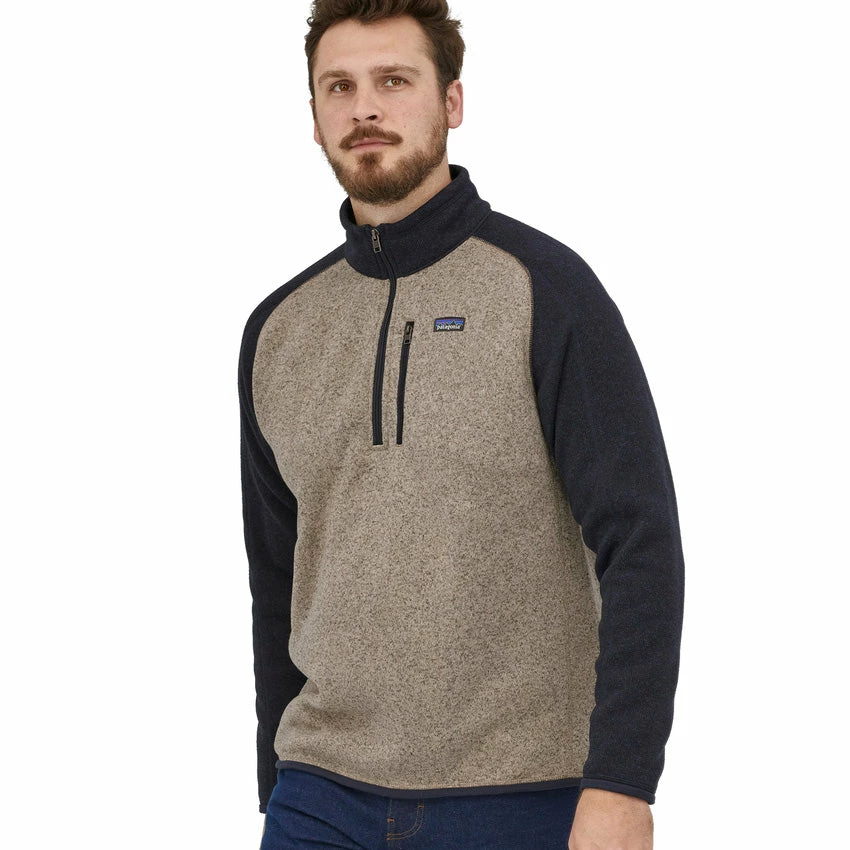 Made with 100% recycled polyester knitted fleece with a fleece interior and heathered yarns. The Men’s Better Sweater 1/4 Zip has a quarter-zip in the front for easy put-on-and-off, with zip-through stand-up collar and raglan sleeves for mobility and pack-wearing comfort. Zippered left-chest pocket and shape-holding micropolyester-jersey trim at cuffs and hem to resist abrasion.