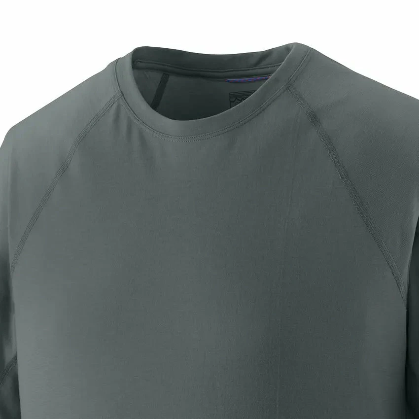 Made with 70% recycled polyester and 30% Naiaâ„¢ Renew – an innovative material that’s a blend of renewable wood pulp and postconsumer plastics) – the feel is soft next to the skin, stretchy, resists odours and wicks moisture. The Capilene Cool Trail Shirt has set-in sleeve construction with underarm gussets that offer chafe-free comfort when layering and a range of motion. Tagless design for itch-free comfort, and small locker loop to make it easy to hang dry. Small Patagonia P-6 woven label at the left-front hem.