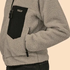 Featuring a soft windproof membrane bonded between a thick and fuzzy outer layer of ¼”-pile sherpa fleece and an interior moisture-wicking, highly air-permeable mesh lining with Polygiene® permanent odour control. The resulting fabric layers trap heat, block wind and feel smooth and comfortable against the skin.