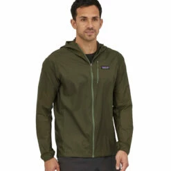 Half-elastic cuffs seal the wrists of the Houdini Jacket and a drawcord cinches the hem. A DWR (durable water repellent) finish coats the shell and the centre-front zipper. The Patagonia logo on the left chest is reflective to assist with visibility on the trail.
