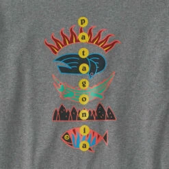 - Retro Patagonia original logo art on the back, small Patagonia logo detail on chest pocket