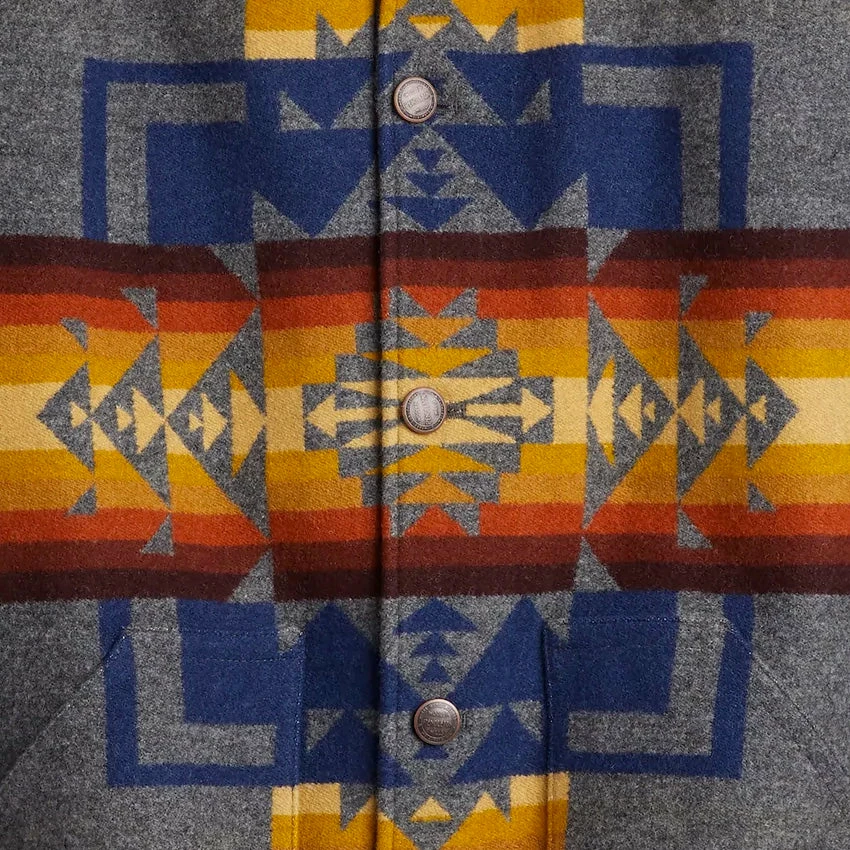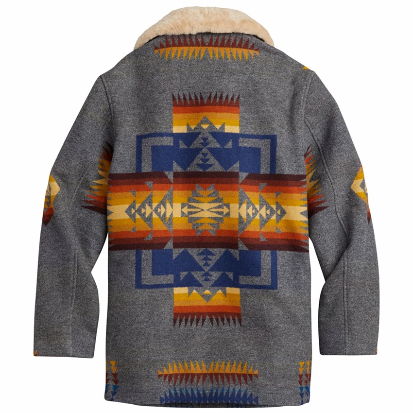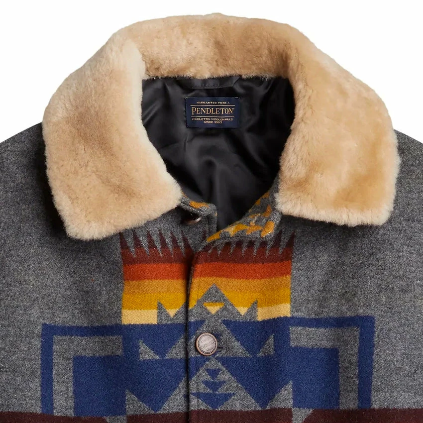Woven from a warm wool blend, this outdoor coat features a genuine shearling collar for unrivalled warmth and comfort. Two pockets on the front, and lined for even more warmth. This pattern is one of Pendleton’s oldest and most popular, inspired by the Chief Joseph, who led the Nez Perce tribe native to northeastern Oregon in the late 1800s.
