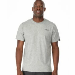 A soft, 100% organic cotton t-shirt from Rab, an everyday tee with a small Rab logo on the front and their 3 Peaks Mountain Graphic on the back.